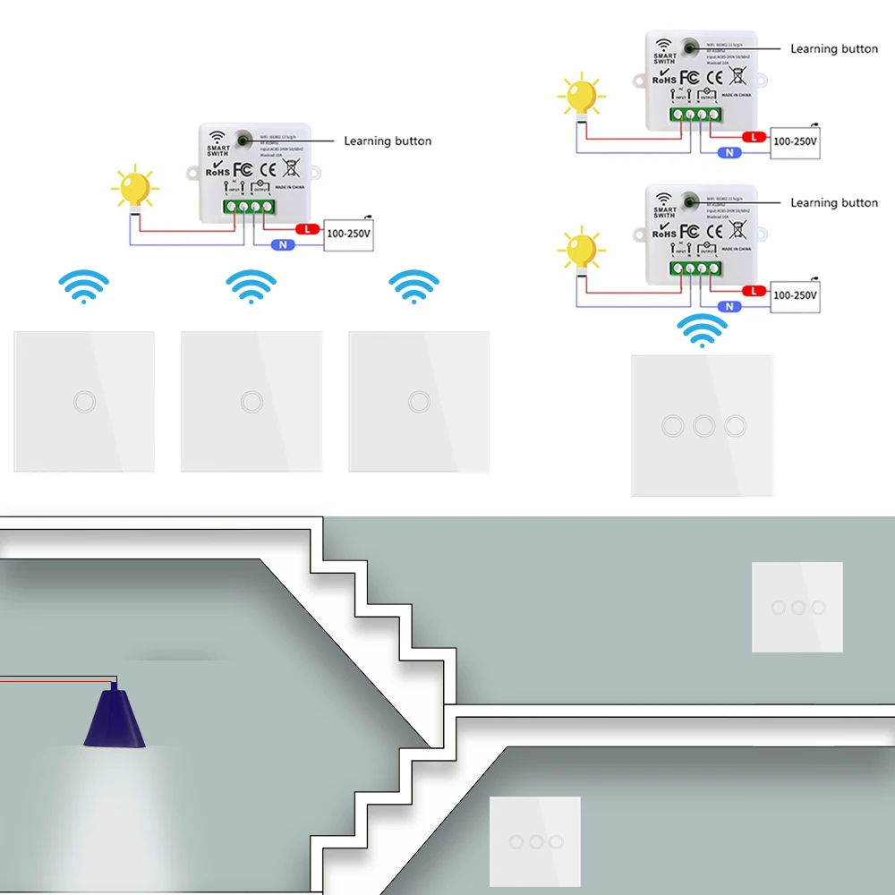 Мини WI-FI умный дом Управление переключатель Беспроводной 433 МГц сенсорная кнопка стены Панель реле светильник Модуль переключателя таймера GoogleHome Alexa220V