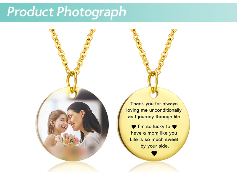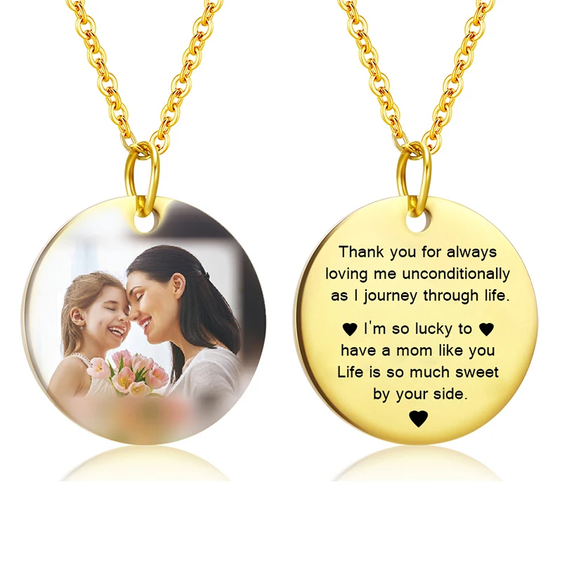 День матери сердце Форма круглое ожерелье персонализированные табличка с именем фото именем на заказ золотая цепочка ожерелье для мужчин и женщин по индивидуальному заказу ювелирные изделия