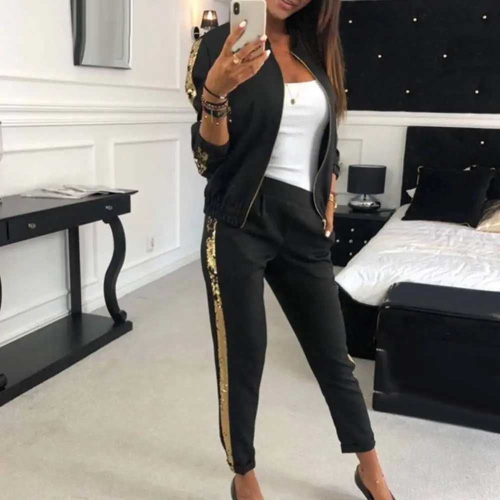 2 шт. для женщин спортивный костюм с блестками спортивный костюм пэчворк толстовка, жакет для девочек, комплект со штанами, топ + штаны, спортивные костюмы комплект одежды из 2 предметов в комплекте с набором подходящих сумочек