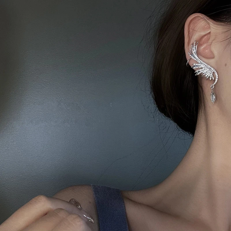 1 шт. серебряный цвет Крылья Ангела Роскошные Кристальные серьги-ре...