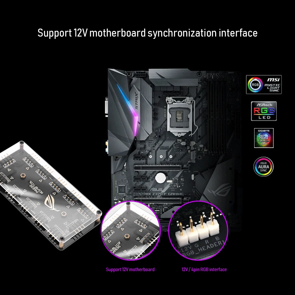 1. Поддержка для ASUS, MSI, Gigabyte, ASRock материнская плата 12V 4-контактный интерфейс RGB управление через материнскую плату, можно синхронизировать освещение с другими D-RGB продукты.