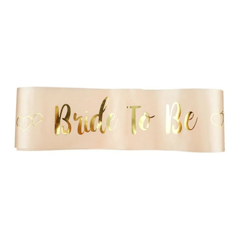 С золотым блеском, с надписью "Bride to Be" атласной лентой на пояс...