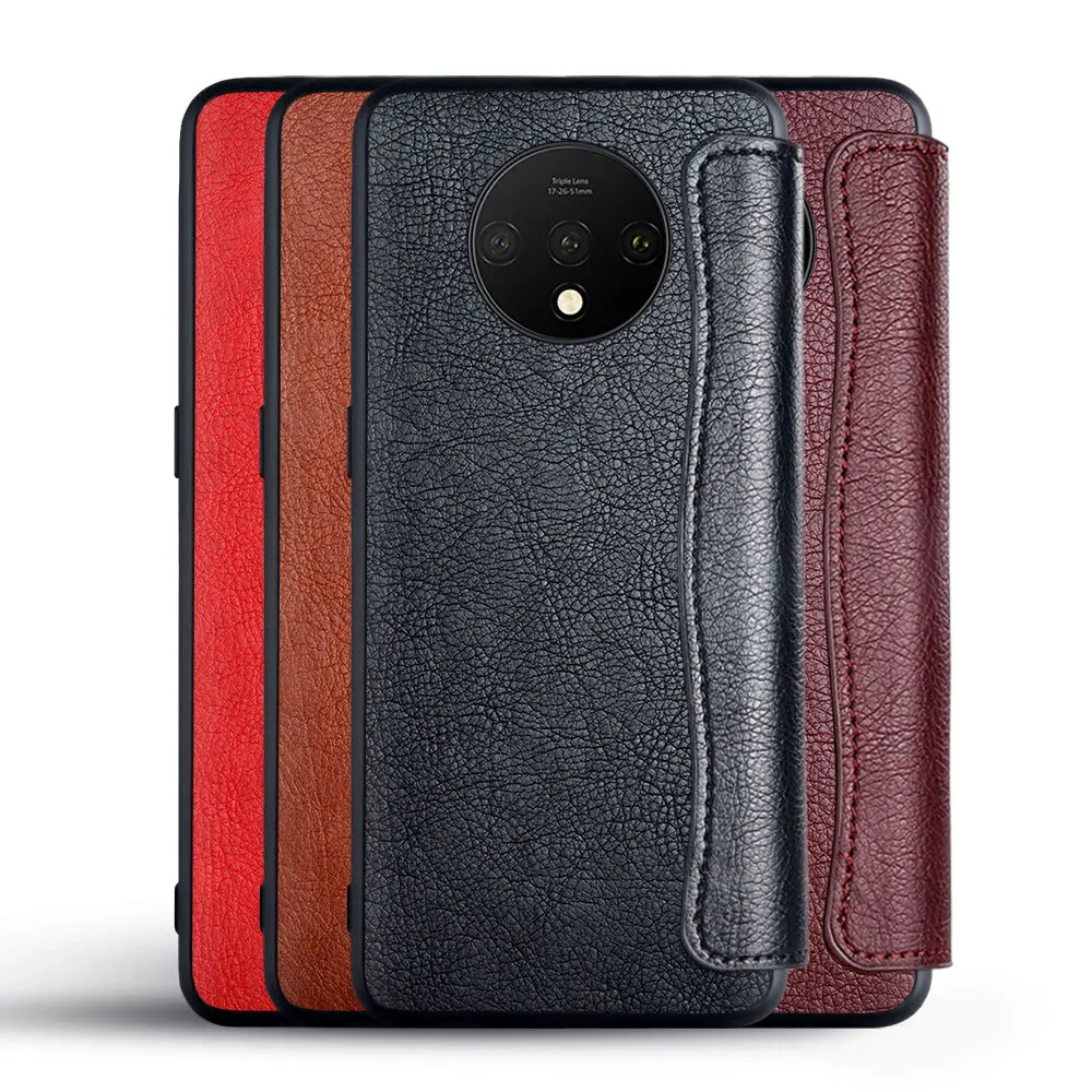Чехол для телефона для OnePlus 7T funda, деловой стиль, однотонный, искусственная кожа, без магнита, слот для карты, откидной Чехол для OnePlus 7T, чехол coque