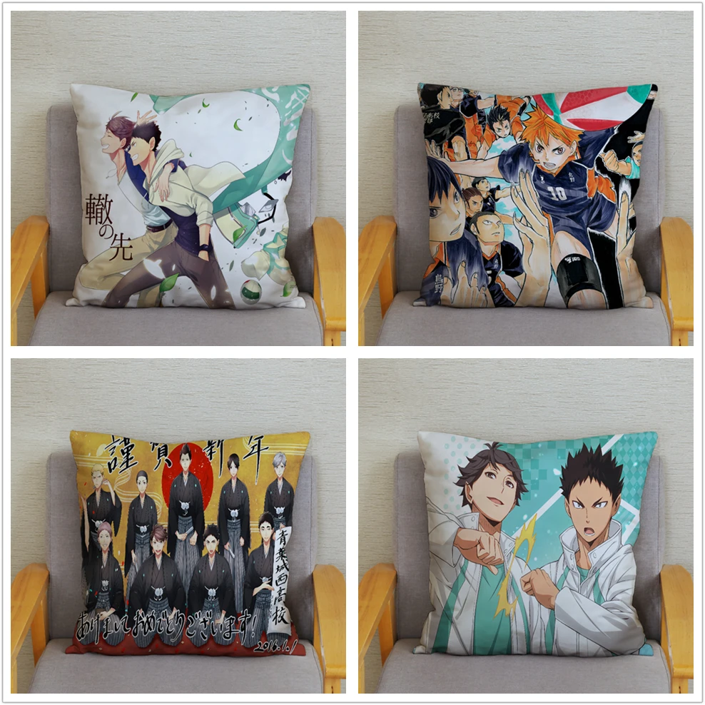 Квадратная наволочка с рисунком Аниме Haikyuu, наволочка с рисунком волейбола и мальчика, детский подарок, домашний декор, мягкие искусственные чехлы