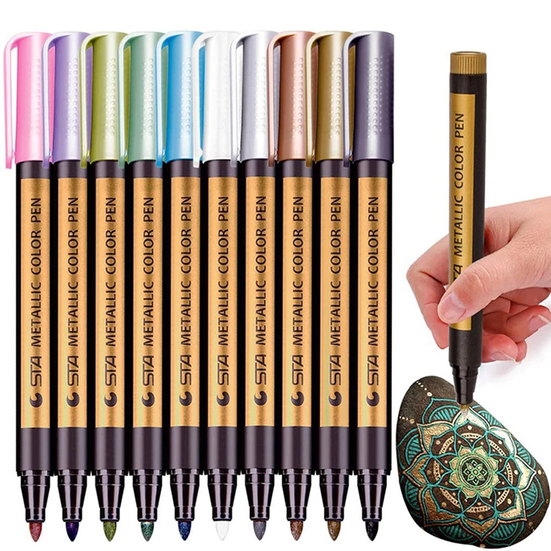 Металлические маркеры: Средний точка Маркеры цвета "металлик" идеально подходит для скрапбукинга, журнала, письма, рисования и раскраски. Легко отмечать на Белой и Черной бумаге и многих других поверхностях, таких как камни, камень, стекло, дерево, металл, пластик, керамика, холст, ткань, кожа и сделай сам, Ваши художественные проекты