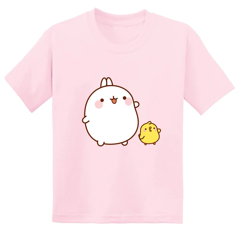 Забавная детская футболка Molang and Piupiu, милый кролик Molang Bunny, детская одежда для маленьких девочек, летняя футболка с коротким рукавом, GKT5217