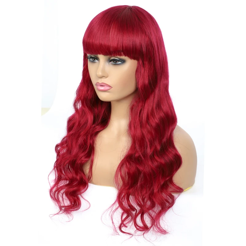 Парик из натуральных бразильских волос с челкой, красная шерсть Rem...