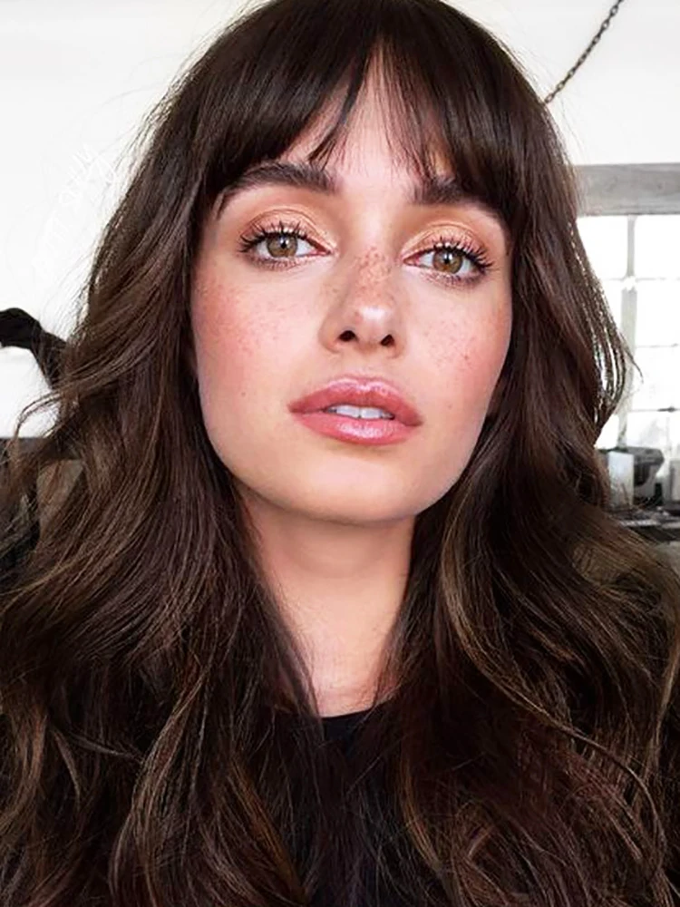Парик из человеческих волос Full Machine с челкой, парик с волнисты...