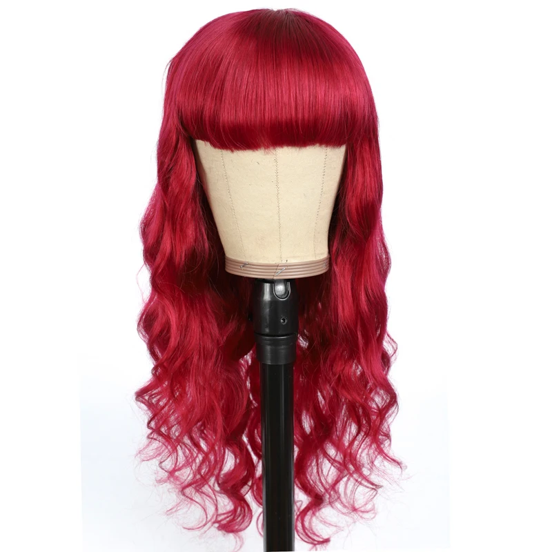 Парик из человеческих волос с челкой, волнистые волосы, окрашенные ...