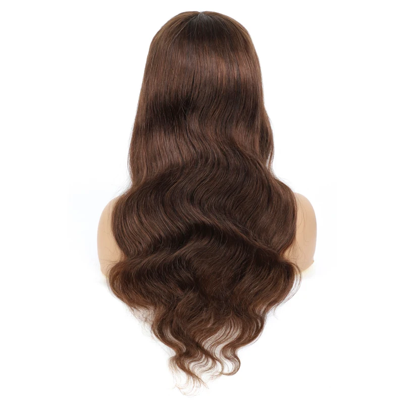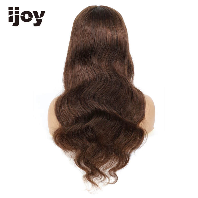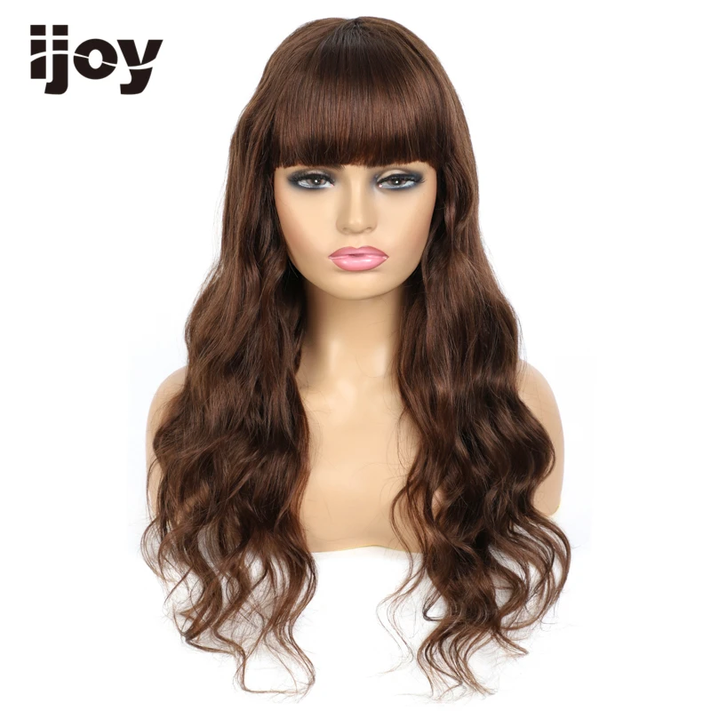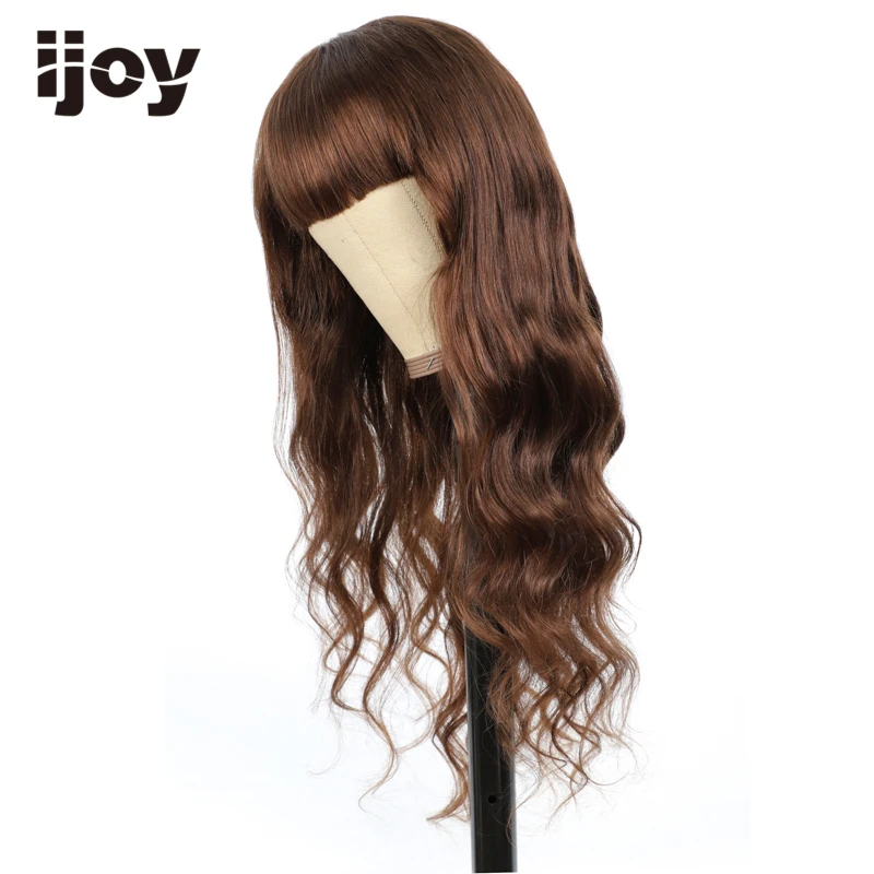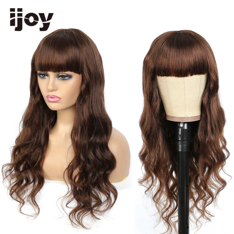 Парик из натуральных волос IJOY, с челкой, волнистый, окрашенный, темно-каштановый, бразильский, для чернокожих женщин, 150%