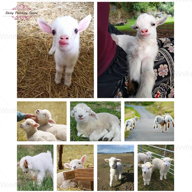 Алмазная мозаика 5D сделай сам, картина из круглых страз, полная выкладка, овечка, ягненок, животное, стразы, вышивка крестиком, Декор