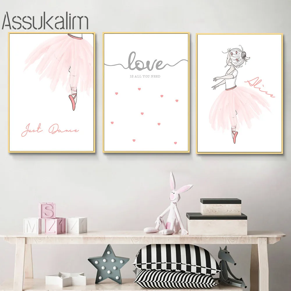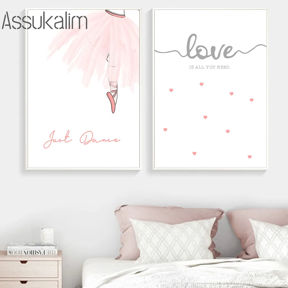 Постеры с именем на заказ, картина балерины, постер с цитатами, скандинавские картины на холсте, розовые картины для девочек, детские настенные принты, декор для комнаты