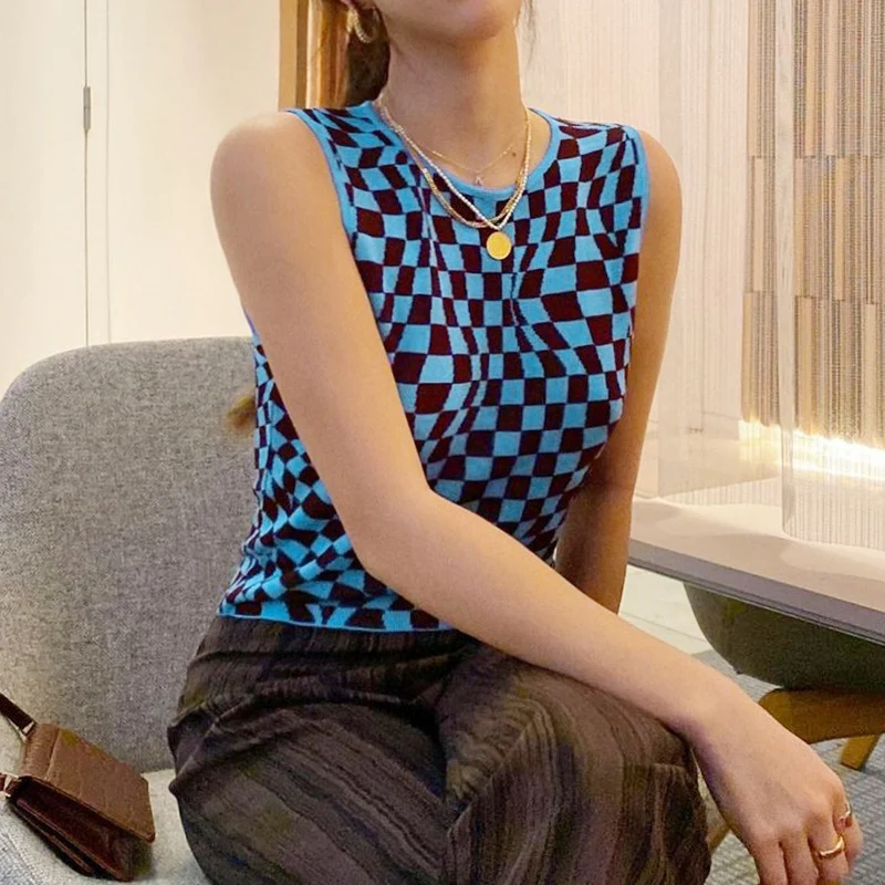 Плед печати Y2k женские вязаные безрукавки для женщин женская летня...