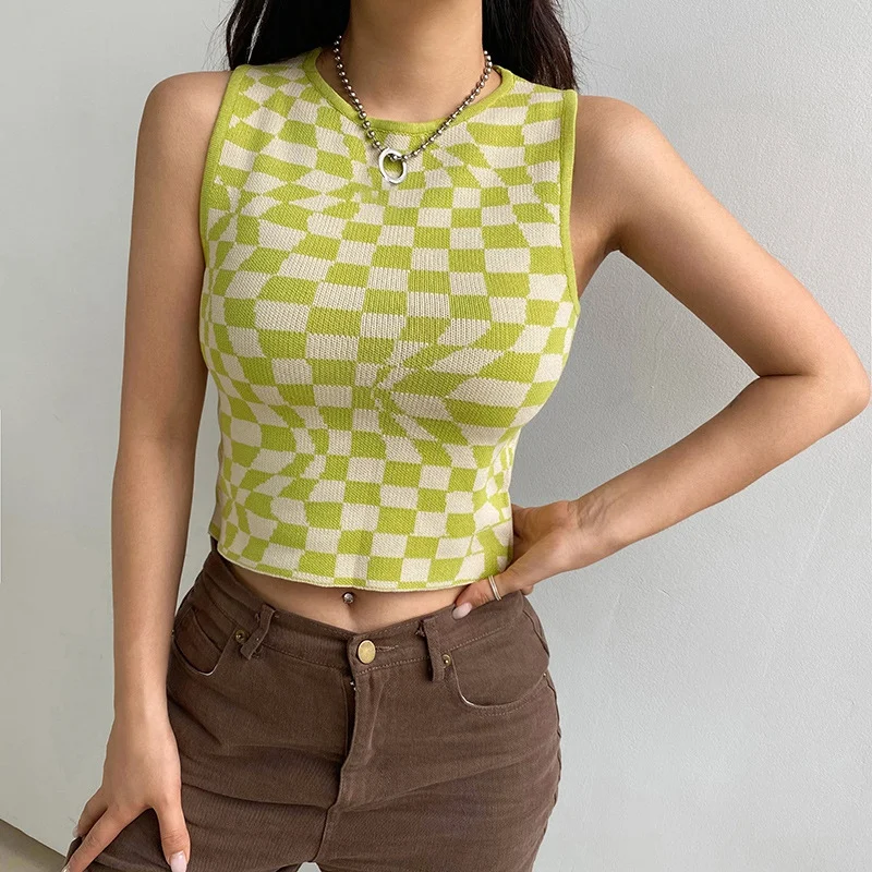 Женская Трикотажная майка в клетку Y2K, летние винтажные укороченны...