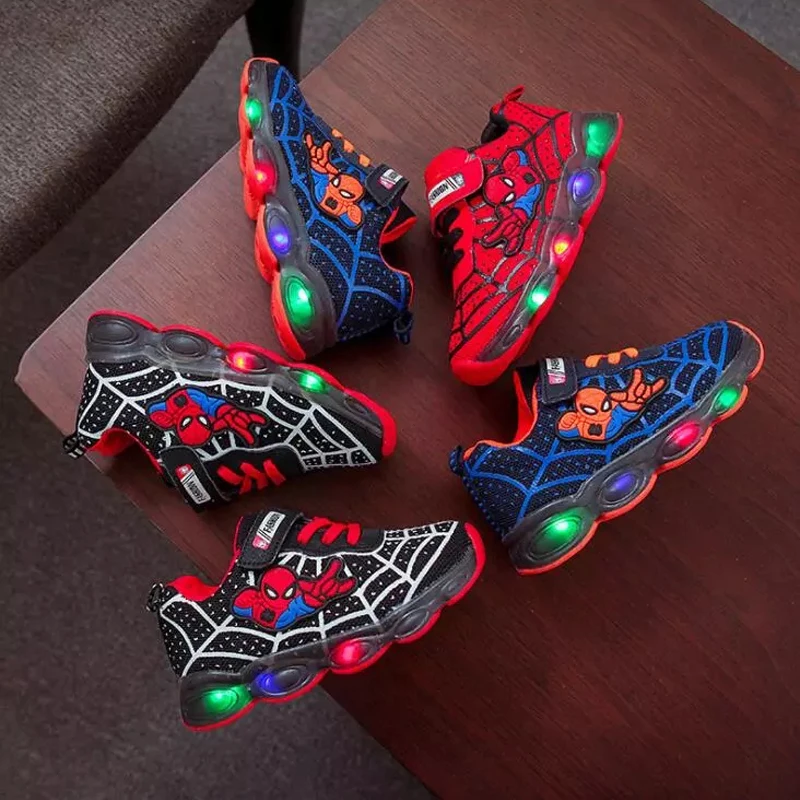 Детская обувь со светодиодной подсветкой Человек-паук для мальчиков и девочек, легкая детская спортивная обувь, сетчатая Спортивная обувь со светодиодной подсветкой для мальчиков и девочек