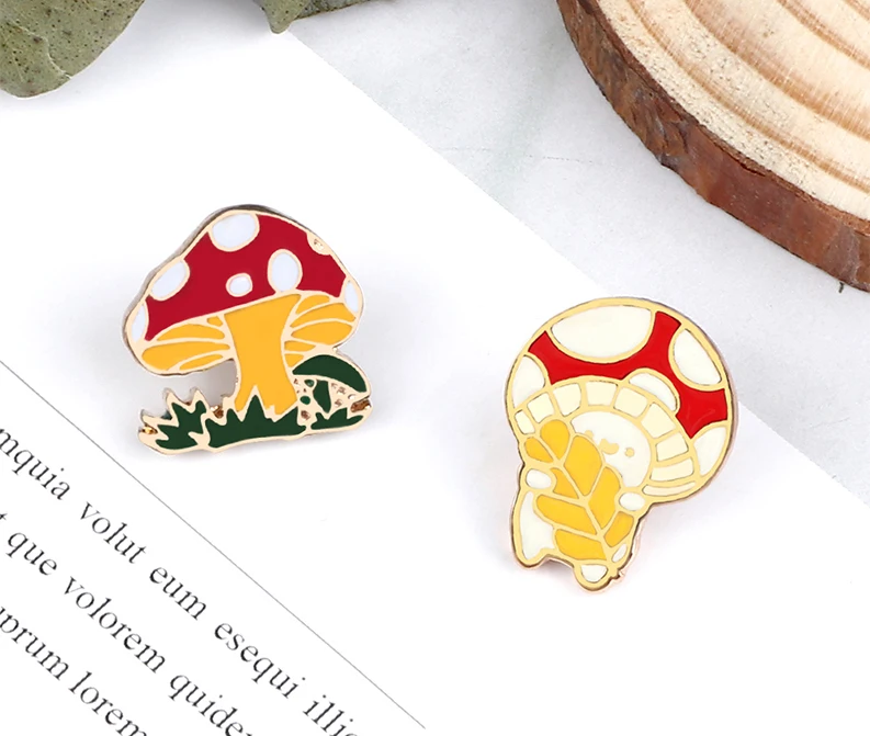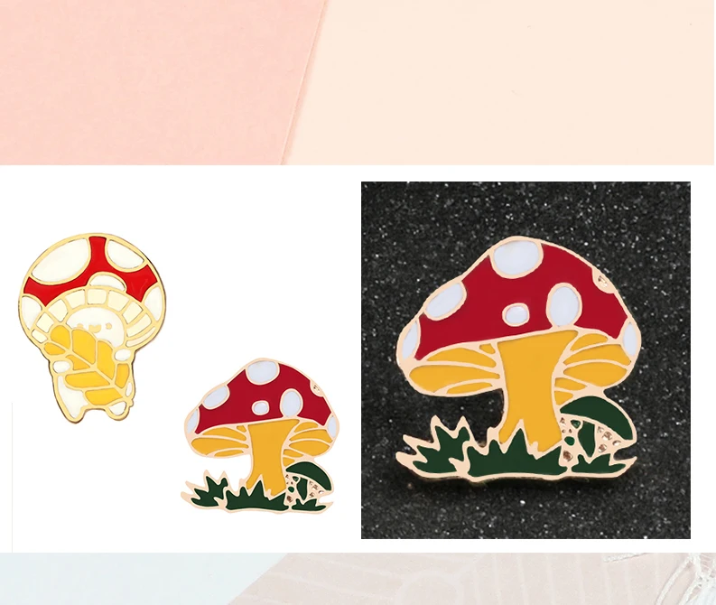 Эмалевые броши в форме гриба для женщин и мужчин, броши в форме красных растений, 2 вида