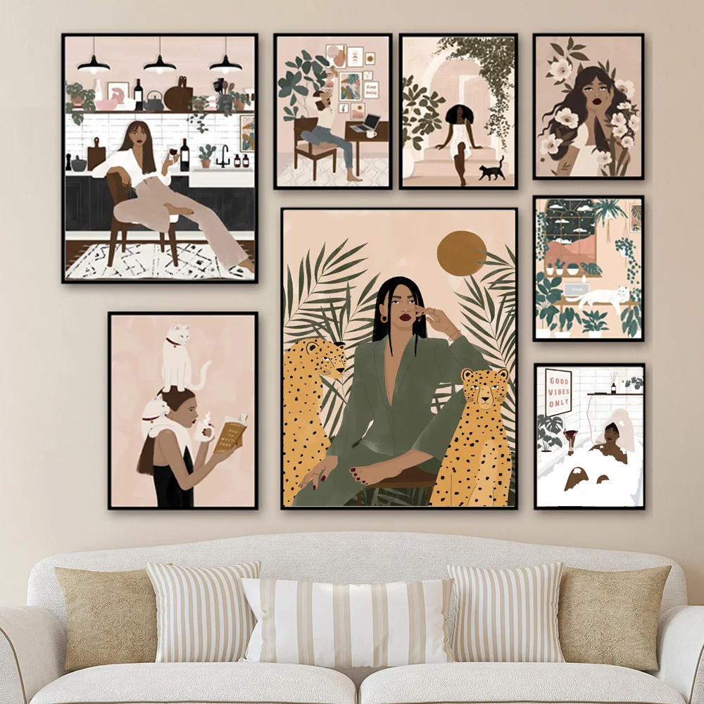 Скандинавский винтажный постер, сексуальная Дымчатая девушка, леопа...