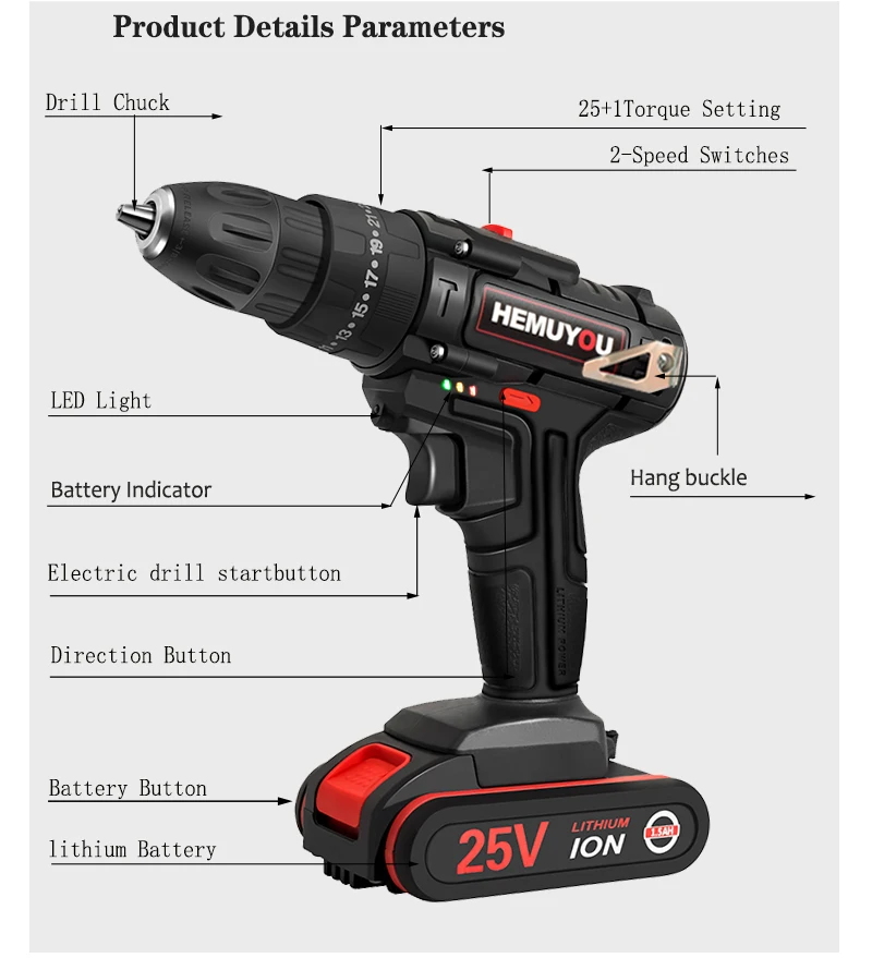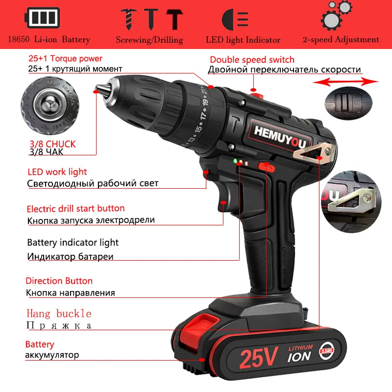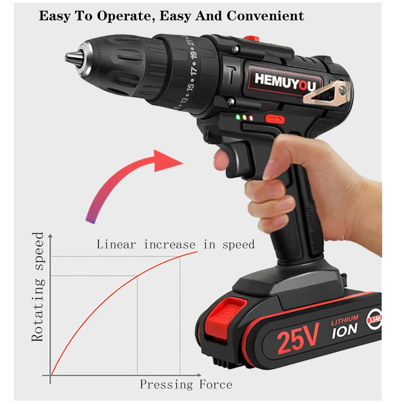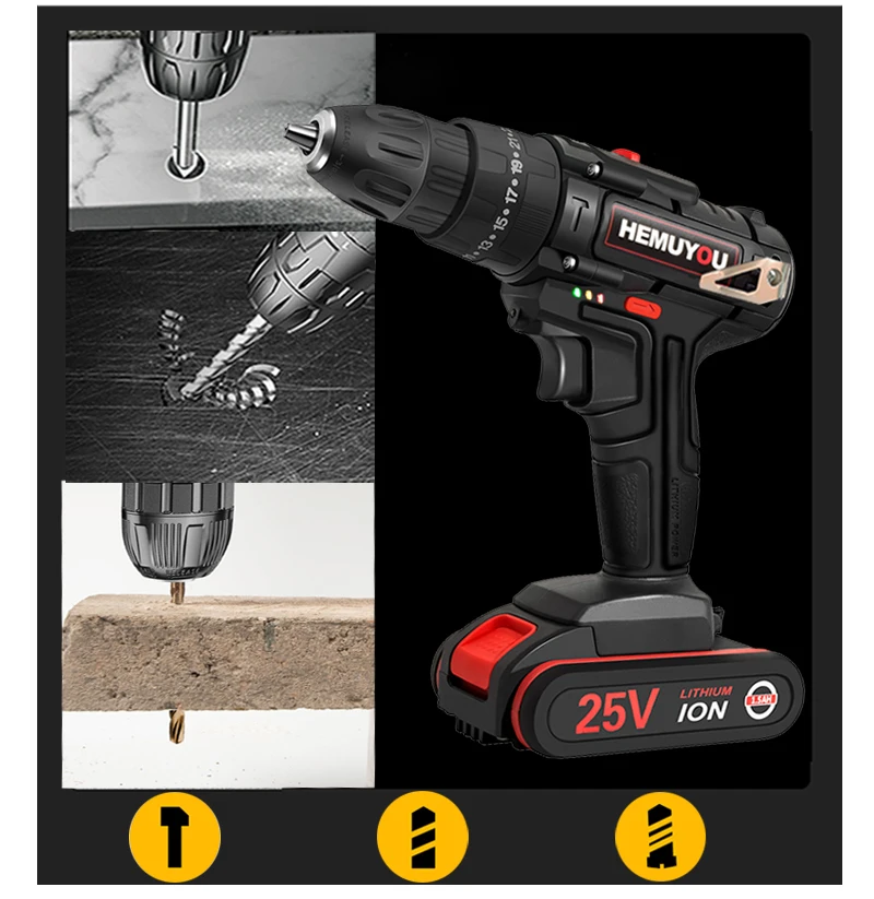 Дрель-шуруповерт аккумуляторная, 16,8 в, 21 в, 25 в