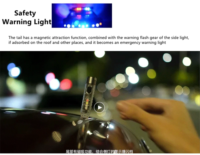 4. Основание вспышки светильник магнитится в сочетании с вспыхивающая сигнальная светильник функцией бокового светильник, он может быть прикреплен к крыше автомобиля в качестве оповещения о чрезвычайных ситуациях светильник.