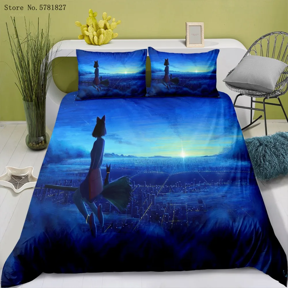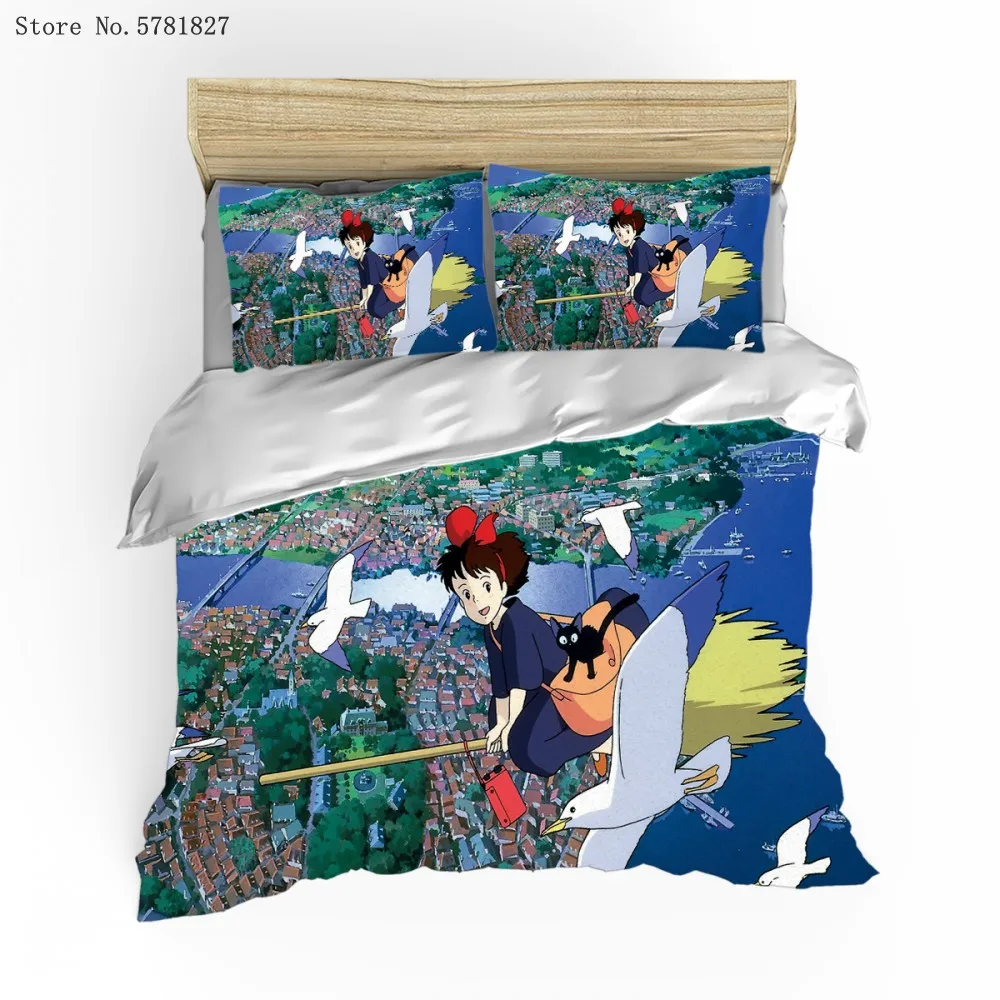 Kiki's Delivery Service, Комплект постельного белья, 2/3 шт., Miyazaki Hayao, пододеяльник с рисунком из мультфильма, постельное одеяло, домашний текстиль, покрывало