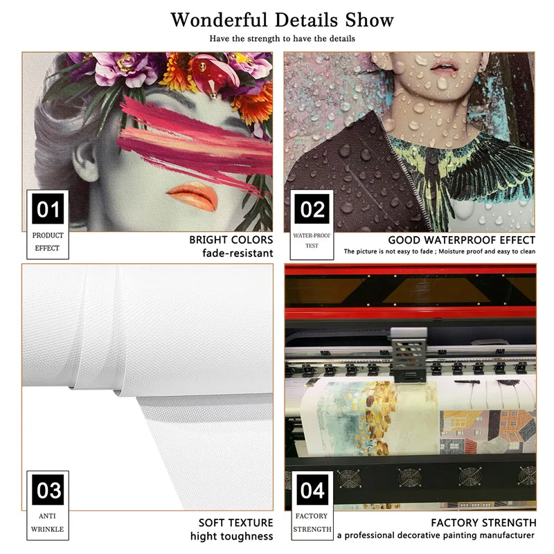 1. Мы используем высококачественный холст с насыщенным цветом печати, тонкой текстурой, водостойкий и влагостойкий, с высокой прочностью на разрыв и очевидным эффектом печати по сравнению с другими холстами.