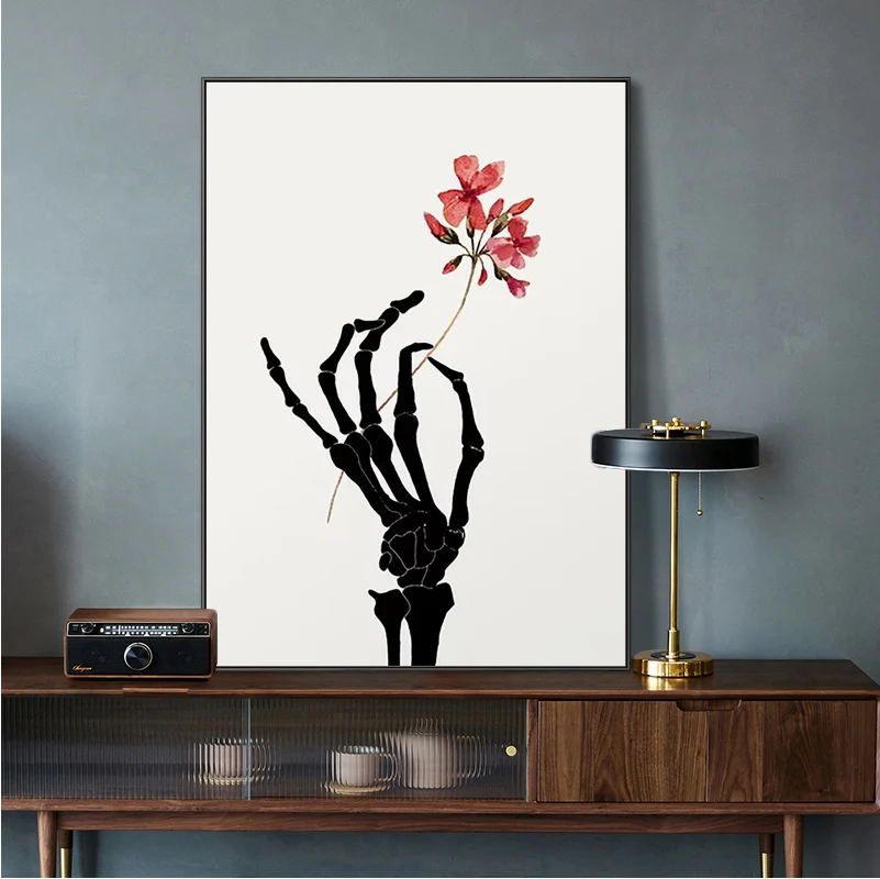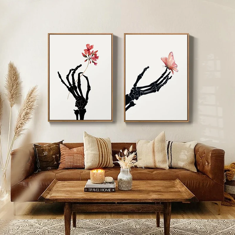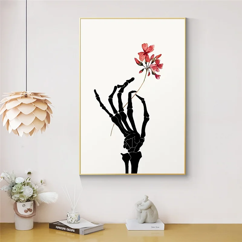Картина на холсте, с изображением скелета и бабочки, абстрактная картина черного и белого цветов в скандинавском стиле для гостиной, домашнего декора