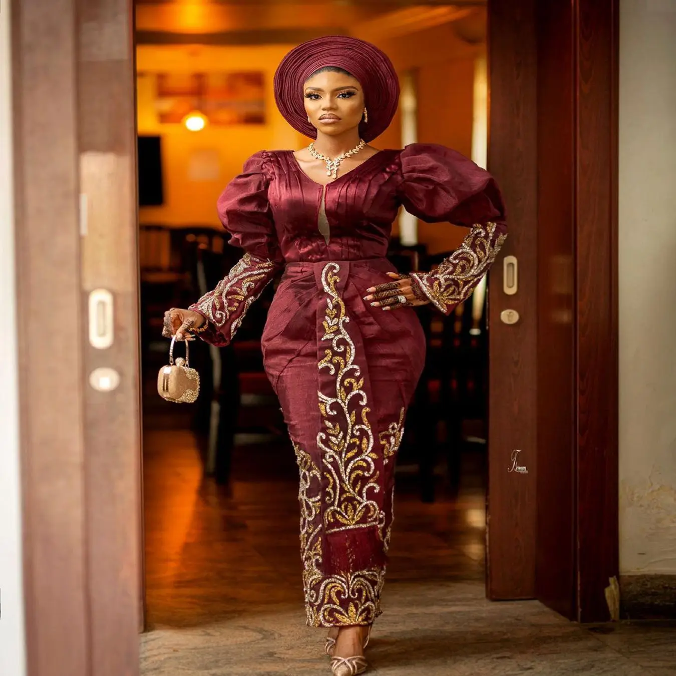 Золото под традиционное платье Aso Ebi платья подружек невесты руса...