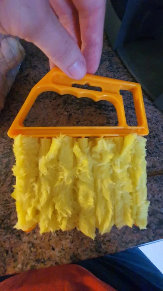 Вообще ни о чём. Хотела помыть жалюзи, намочила - и всё. Жёлтое покрытие стало облезать кусками, особенно, когда этот "гаджет" стала вставлять между ламелиями... Короче, стало грязнее, чем было. Может, это просто для смахивания сухой пыли? Но уж слишком замороченный процесс, легче всё тряпкой сделать.