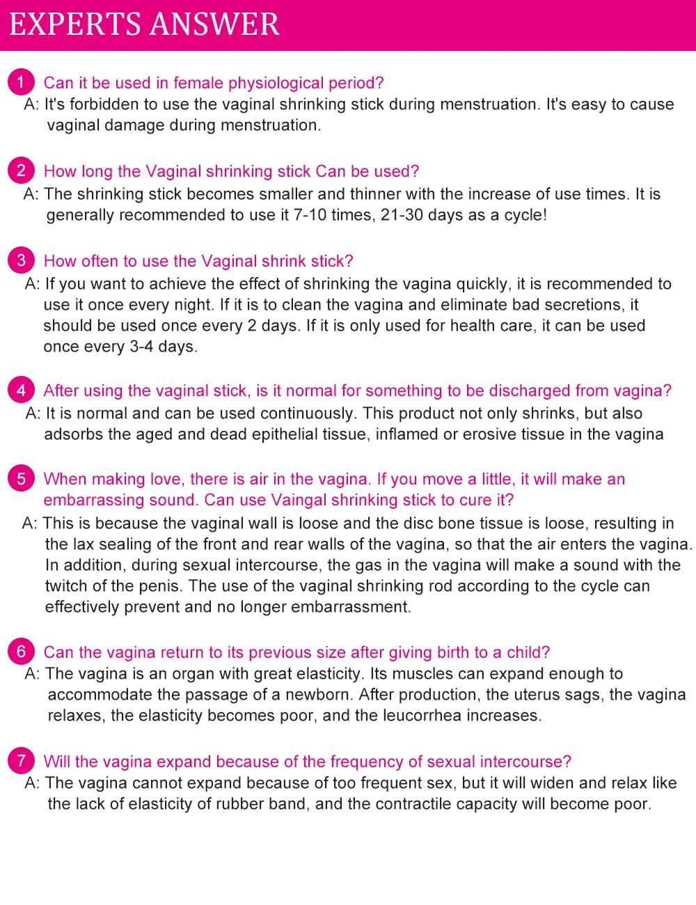 1. Используйте его до половины или одного часа сексуальной любви.2. После очистки влагалища, нанесите краску на палочку, затем медленно вставьте во влагалище, поворачивая примерно на 30 секунд, из-за различных личных обстоятельств, самое длительное время составляет не более 1 минуты!3. После использования Используйте краску для следующего использования. Нельзя стирать слишком долго, в противном случае это уменьшит время использования.4. Держите его в прохладном месте.5. Для личной гигиены: 3 или 4 дня в день.