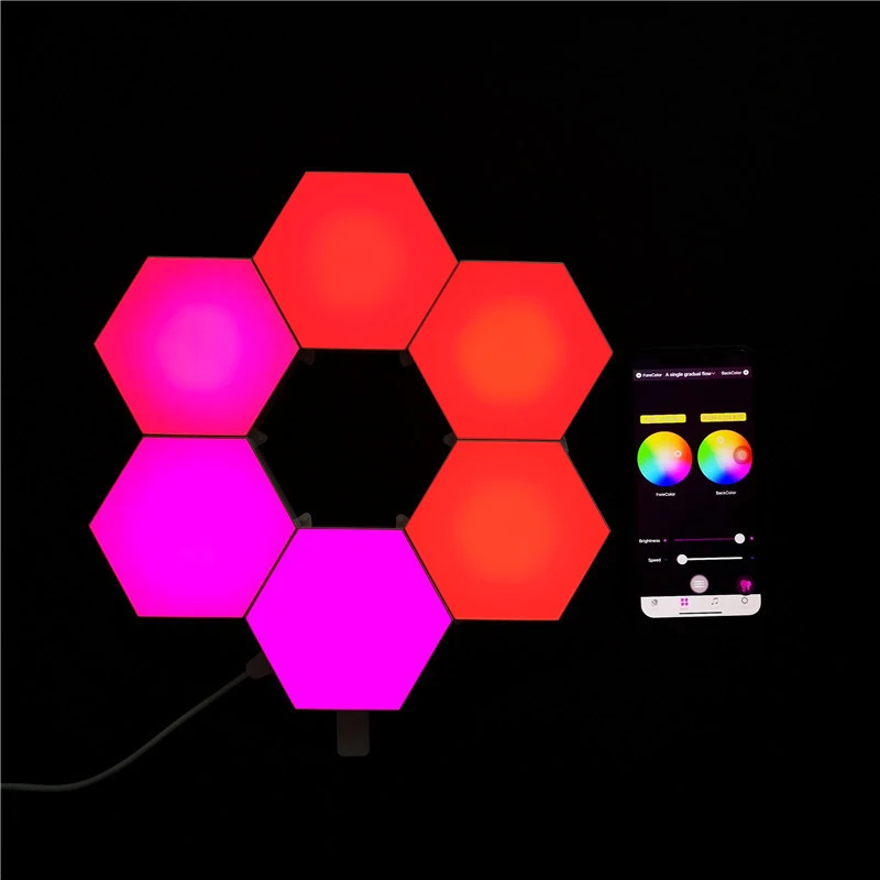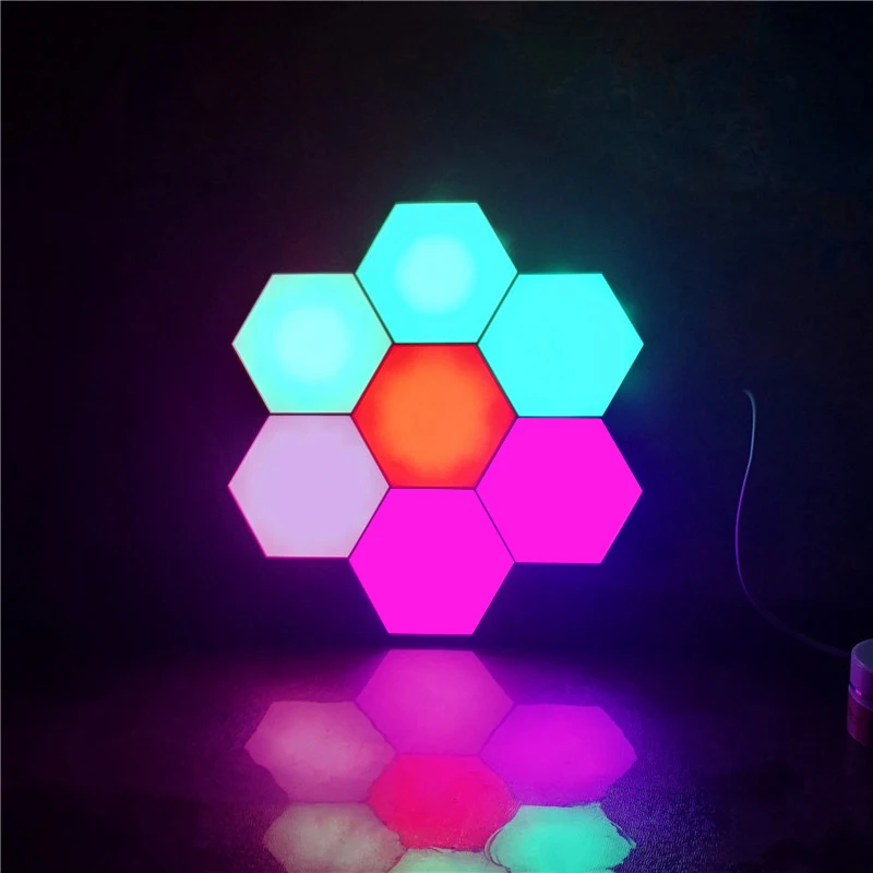 Умная Шестигранная модульная настенная лампа с Сотами, цветная Кван...