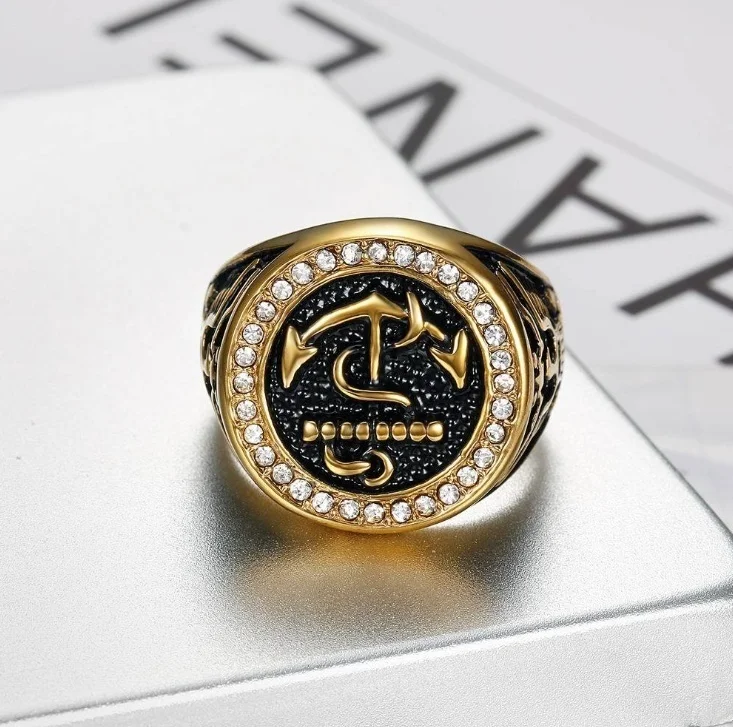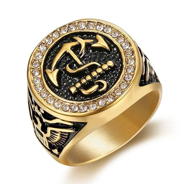 Классическое модное универсальное металлическое панк ретро Циркон якорь мужское модное кольцо ювелирные изделия подарок на день рождения