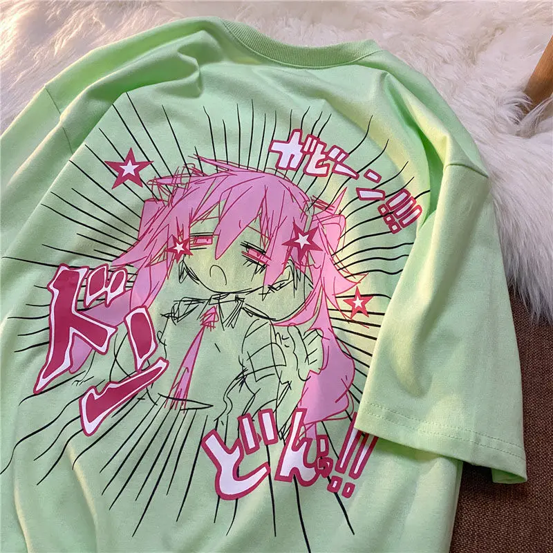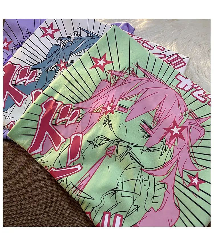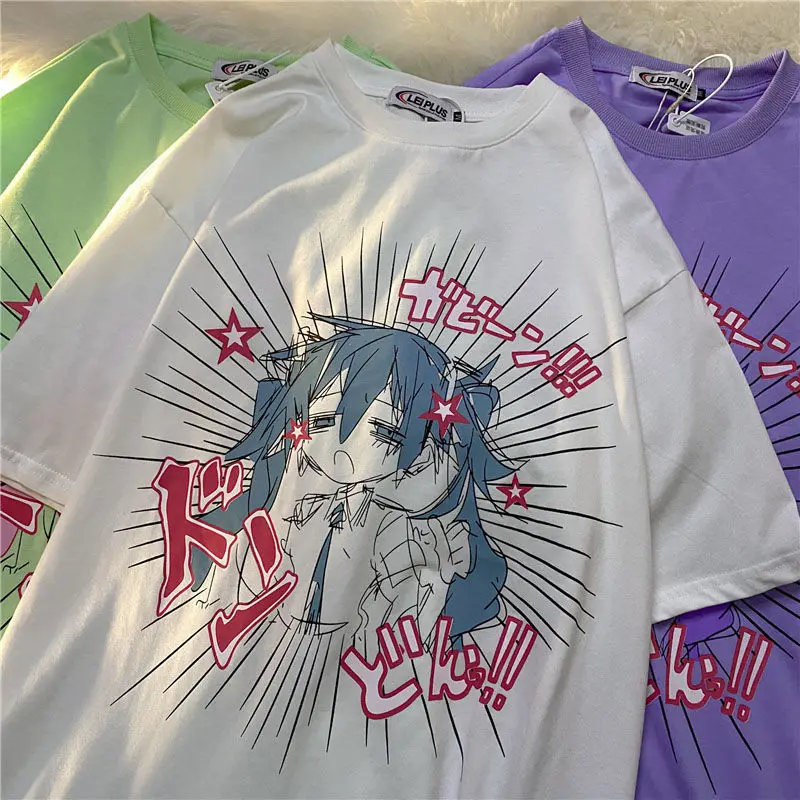Винтажные повседневные топы большого размера Y2K в стиле аниме kawaii, летняя модная Готическая уличная футболка с круглым вырезом и короткими рукавами, женские дикие Топы