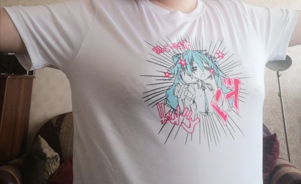 Слишком маленький принт При том ,что брала L ,она оказалась мне в обтяжку ,при том что ношу я всегда S Плюс только в том ,что принт не сотрётся при стирке.