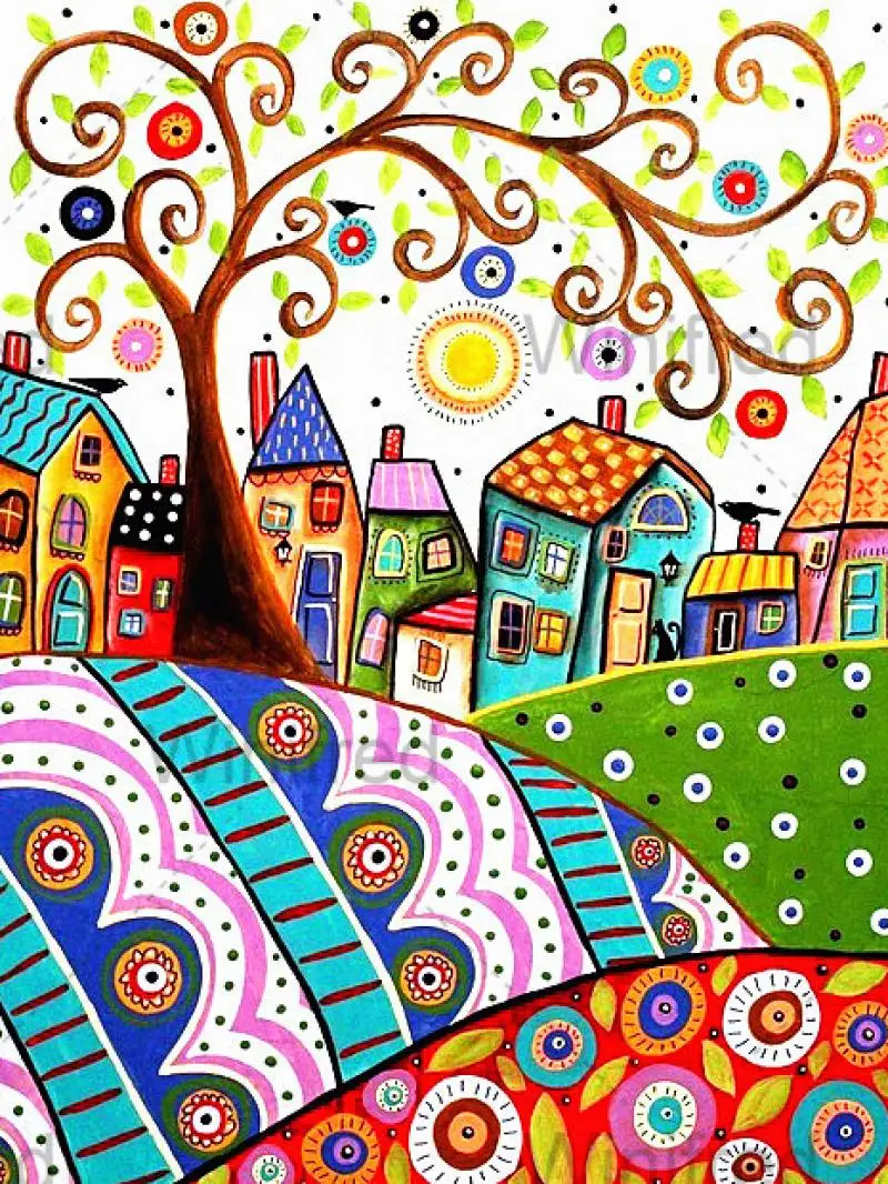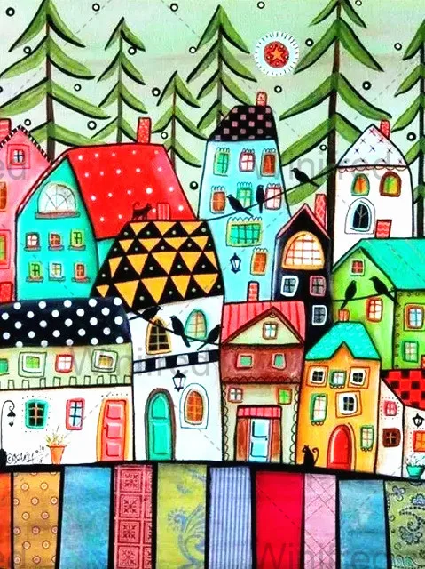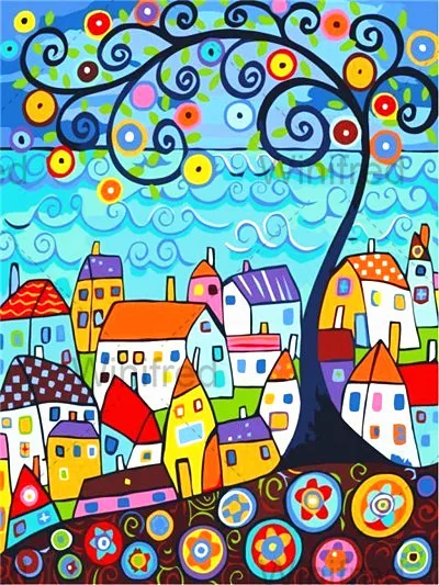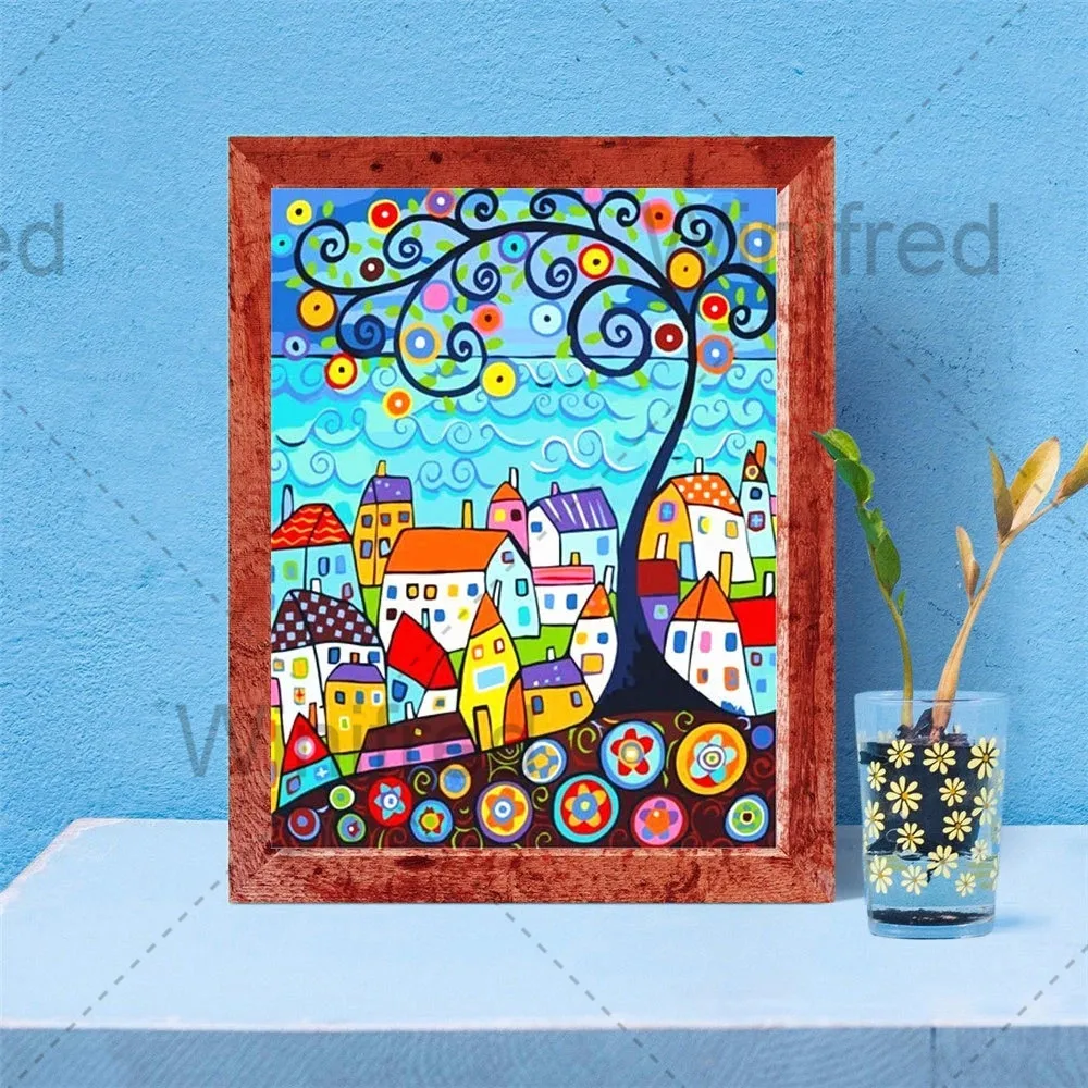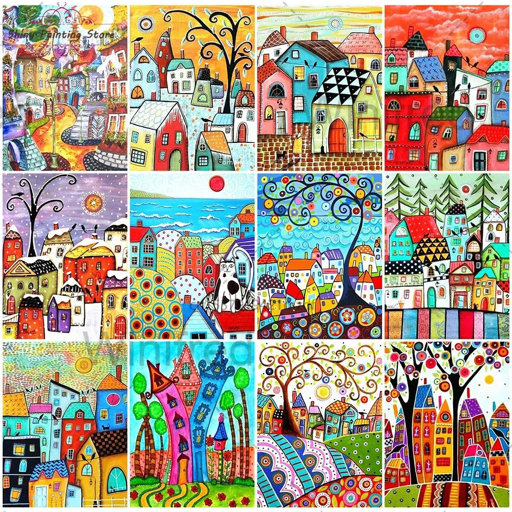 5D сделай сам, абстрактный мультяшный дом, красочная мозаика, алмазная вышивка, полная квадратная, круглая, алмазная живопись, вышивка крестиком для ребенка
