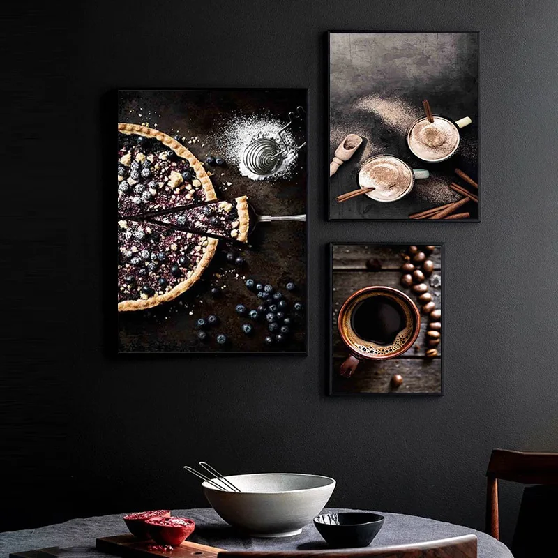 Настенная картина для кухни с изображением коричневого кофе, плакаты с изображением черничного пирога, десерта, для столовой