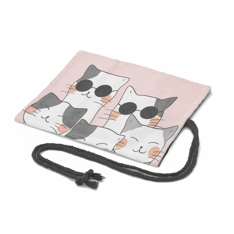 Сумка для студентов с мультяшным котом, сумка для ручек унисекс с 24 отверстиями, милый забавный холщовый чехол для карандашей, принадлежности для хранения, сумка ручка для девочек