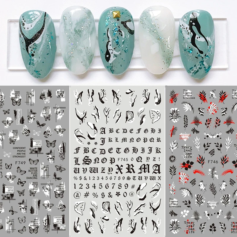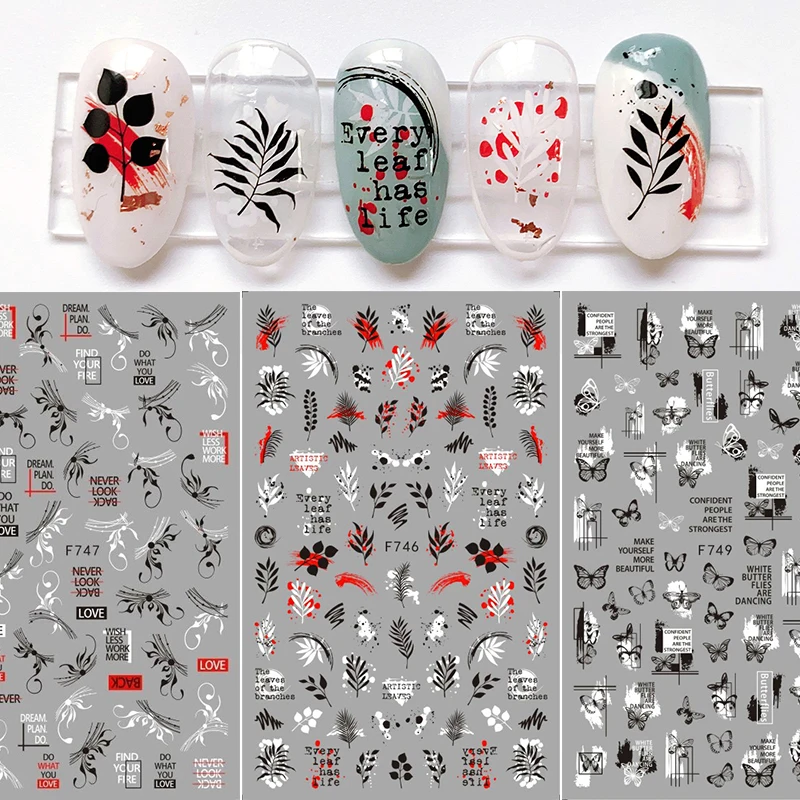 3D наклейка для ногтей с изображением листьев, подсолнухов, дизайнерские наклейки для ногтей Love наклейки на ногти бабочки, самоклеящиеся декоративные слайдеры
