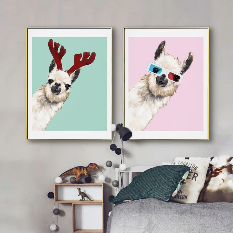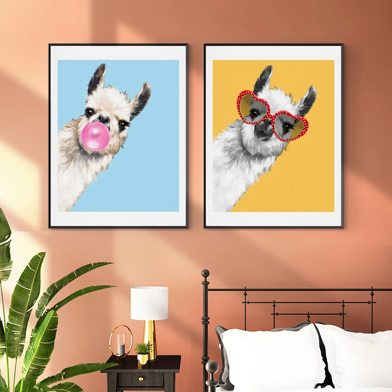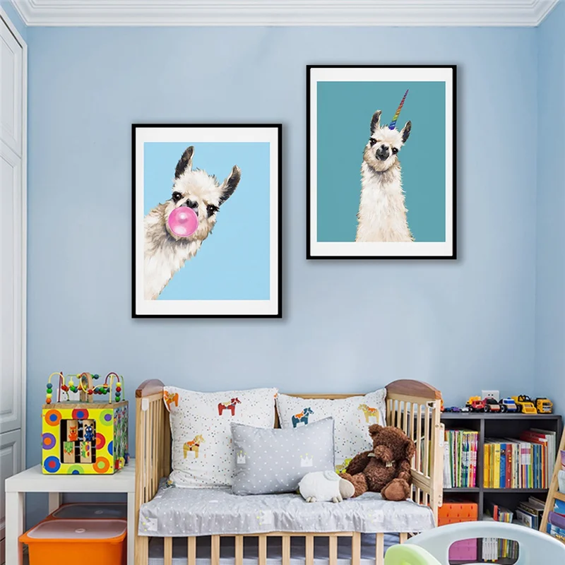 Забавная Картина на холсте с изображением животных из пузырчатой жвачки, розового, синего цветов, детский плакат, Настенная картина, скандинавский декор для детской комнаты, спальни
