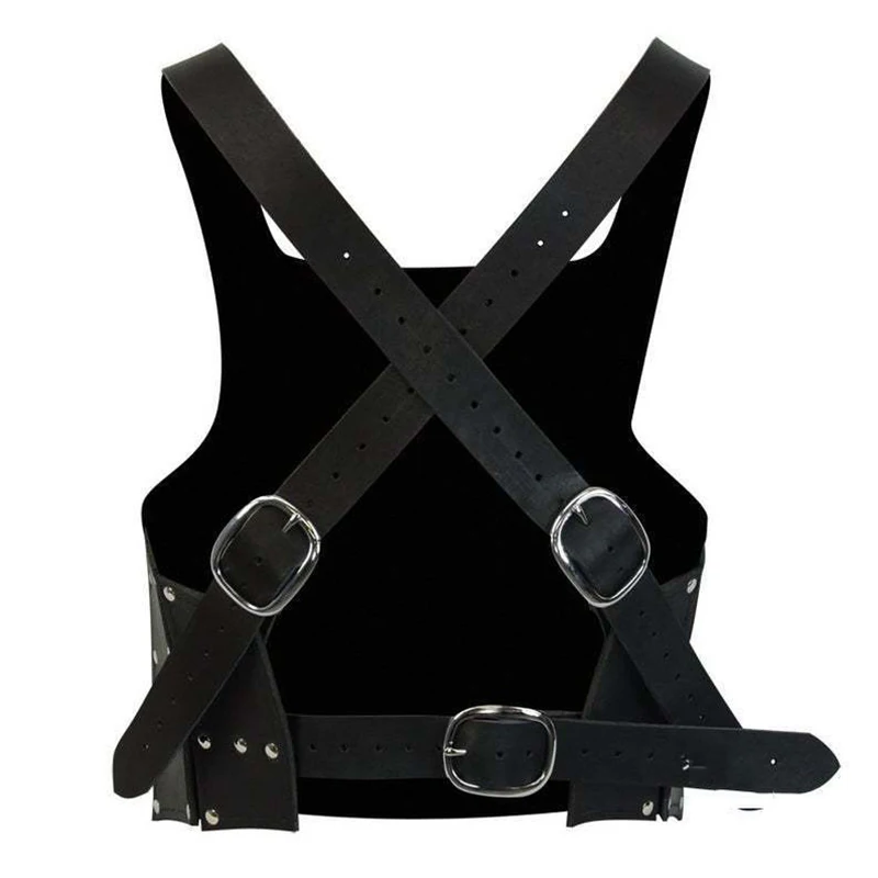 Нормальное качество, вроде даже прям кожа-кожа а не кожзам. На ощупь приятная бархатистая, строчка ровная, клепки все сидят хорошо. Вообще по качеству изготовления вопросов нет. Как я понял задние ремешки надеваются и фиксируются крест на крест. Норм штука за норм цену. Брал другу для страйкбольных ролевых.