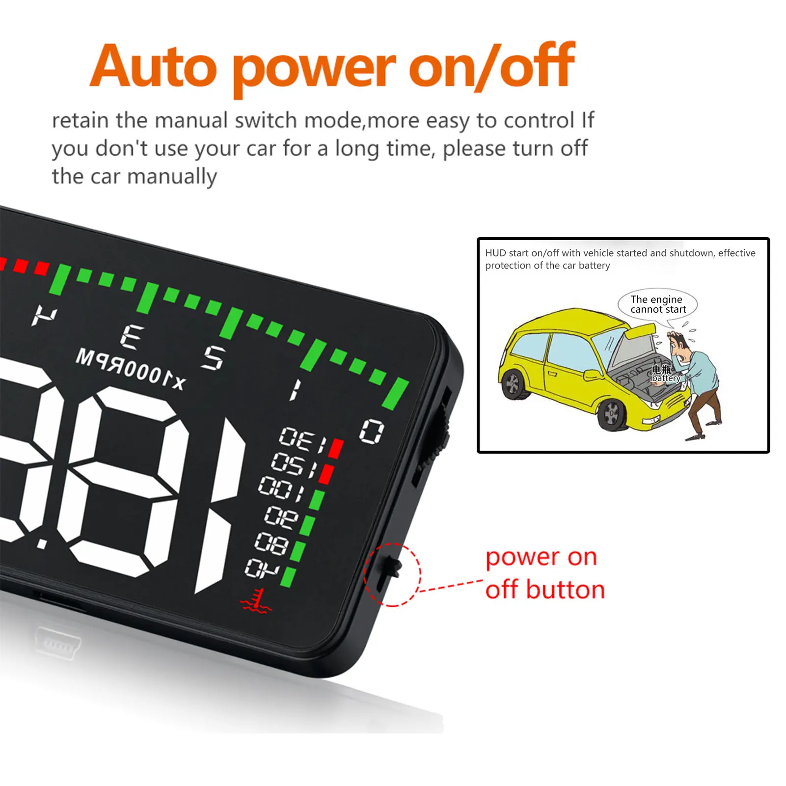 Дисплей на голову A900 HUD, сигнализация для подключения к порту OB...