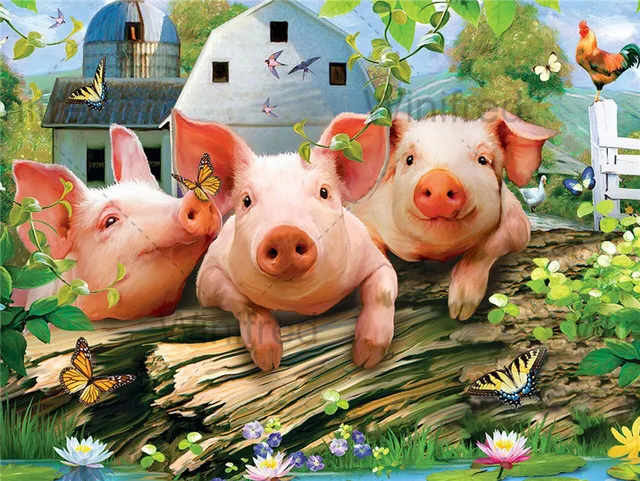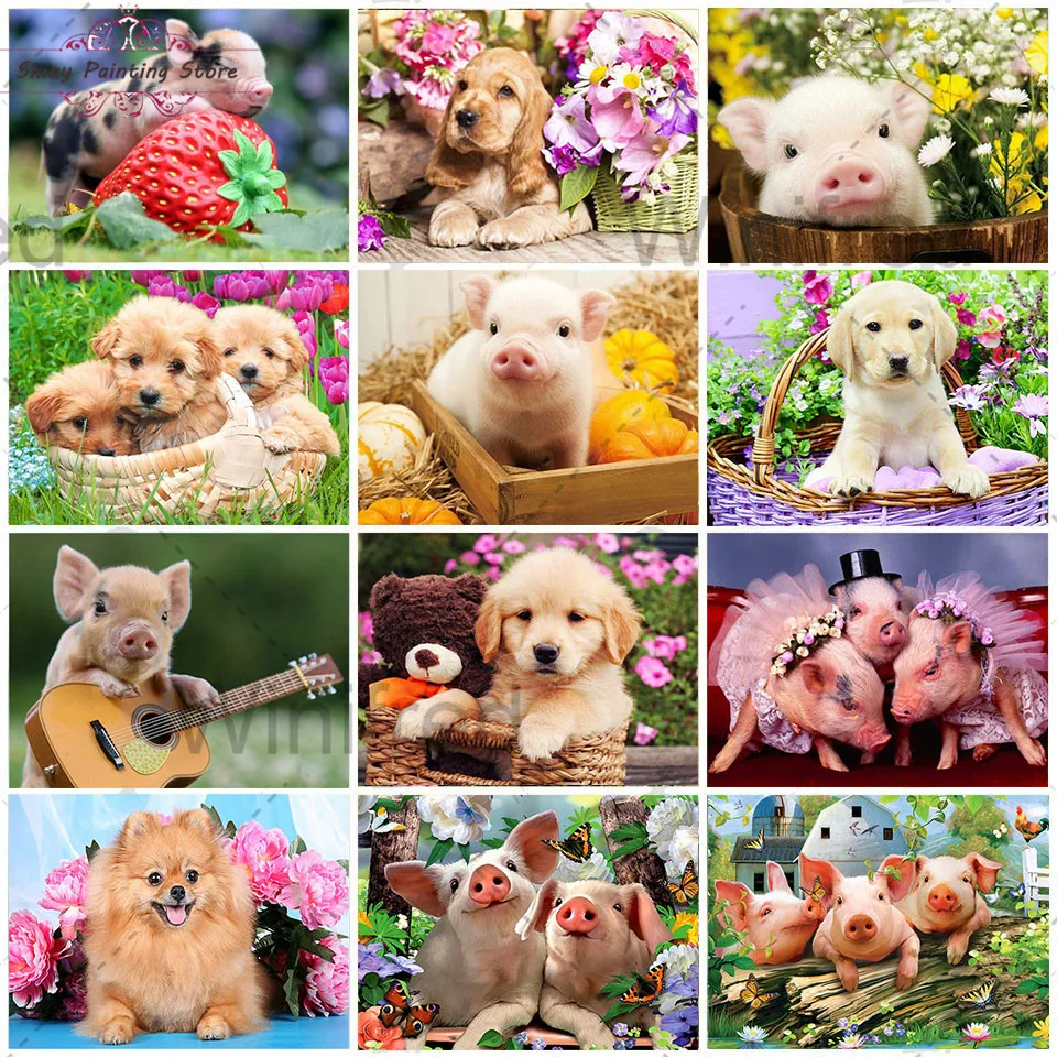 Алмазная живопись с изображением милой свиньи собаки, полностью квадратная, круглая картина 5D, алмазная вышивка сделай сам, вышивка крестиком, золотистый ретривер, картина с животными