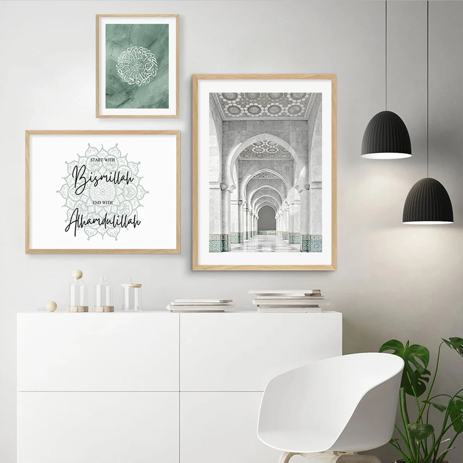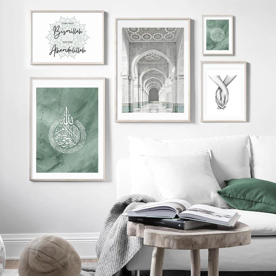 Исламский аятул КУРСИ зеленый Хассан II мечеть Марокко скандинавский плакат настенный художественный Принт Холст Картина Декор картинки для гостиной