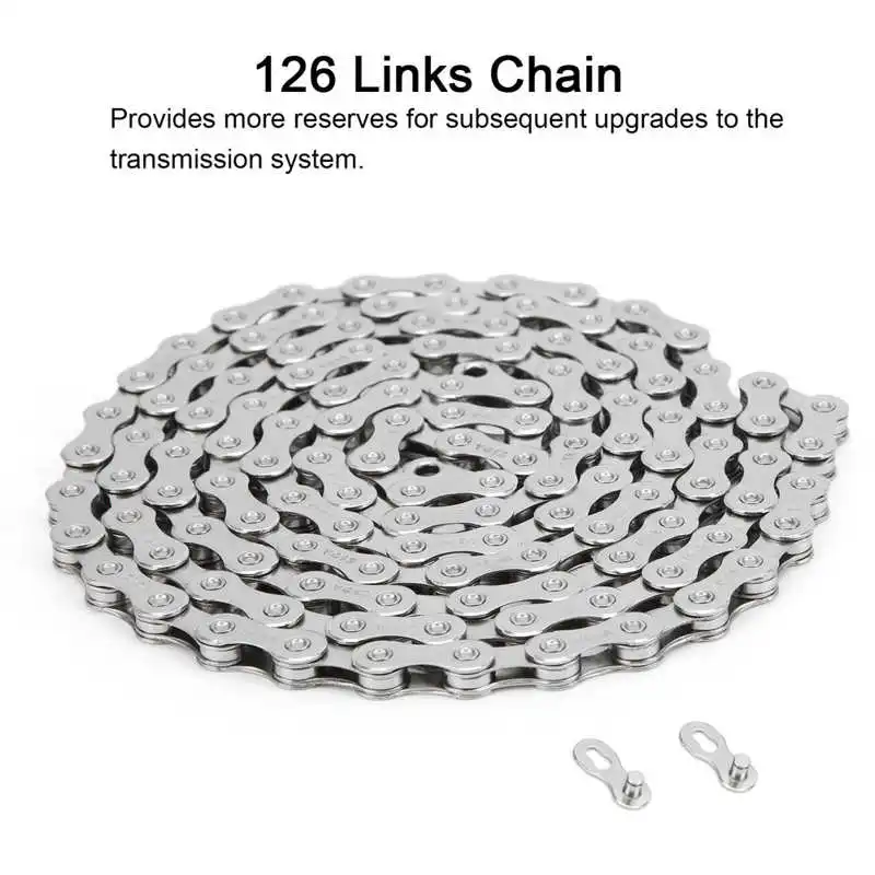 1. Встроенный высокопрочный вал, Усиленная структура с высокой жесткостью, компактная, гибкая и не заклинивает, выдерживает большую силу педали. 2. Длина цепи 126 звеньев обеспечивает больше резервов для последующего обновления системы передачи. 3. Технология внешнего снятия фаски может предотвратить попадание зубьев в цепь, цепь плавно проходит между шестернями и плавно перемещается. 4. Установка звеньев цепи позволяет быстро установить без инструментов, а устанавливать с помощью плоскогубцев безопаснее. 5. Полностью гальванизированное яркое серебро, закалочная термообработка улучшает износостойкость, а обработка поверхности антикоррозийной делает цепь долговечной блестящей. 6. Подходит для систем передачи 12/24/36 скоростей, для всех 12-скоростных велосипедов и почти всех 12-скоростных систем передачи, для Sram/Campagnolo/VG sport.