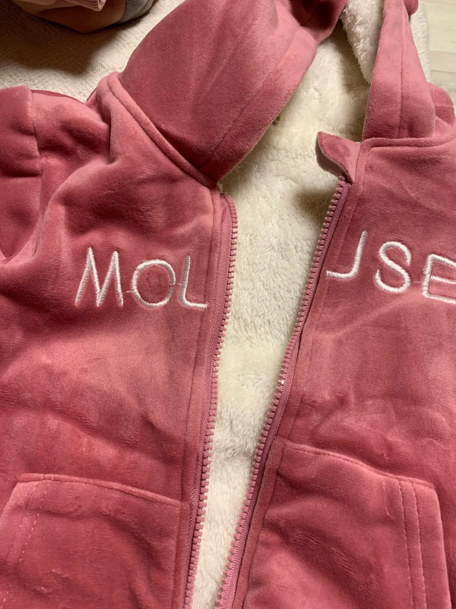 Теплый комплект одежды для маленьких девочек, зимние толстые плюшевые хлопковые комплекты одежды для маленьких девочек, толстовки и штаны, Детский костюм, детская одежда