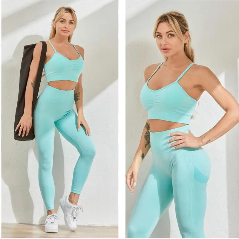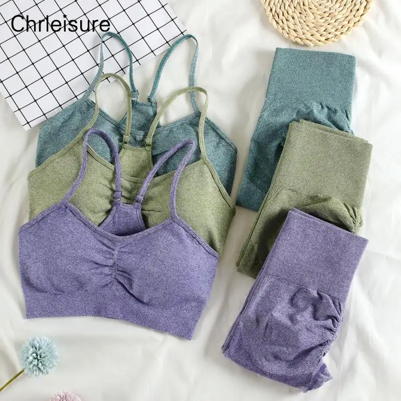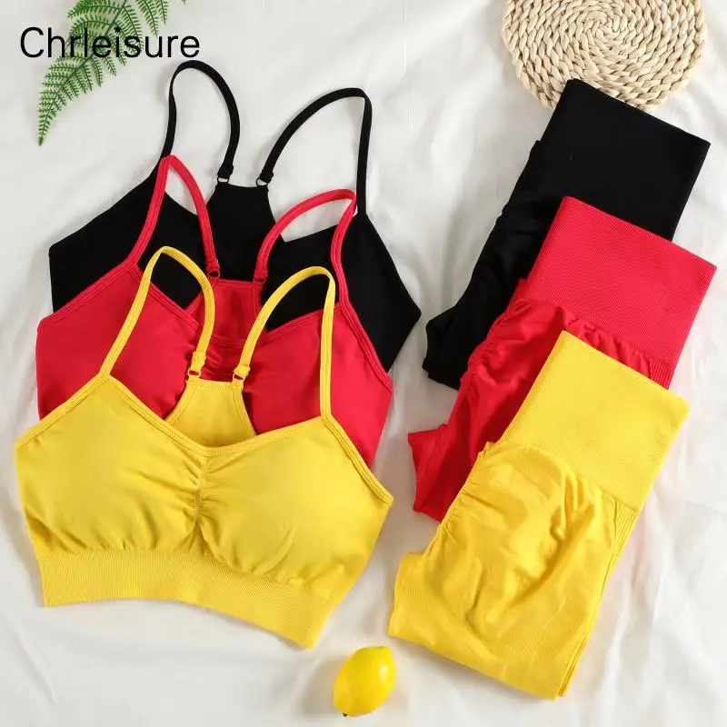Женский спортивный костюм CHRLEISURE из двух предметов: бесшовные леггинсы и бюстгальтер