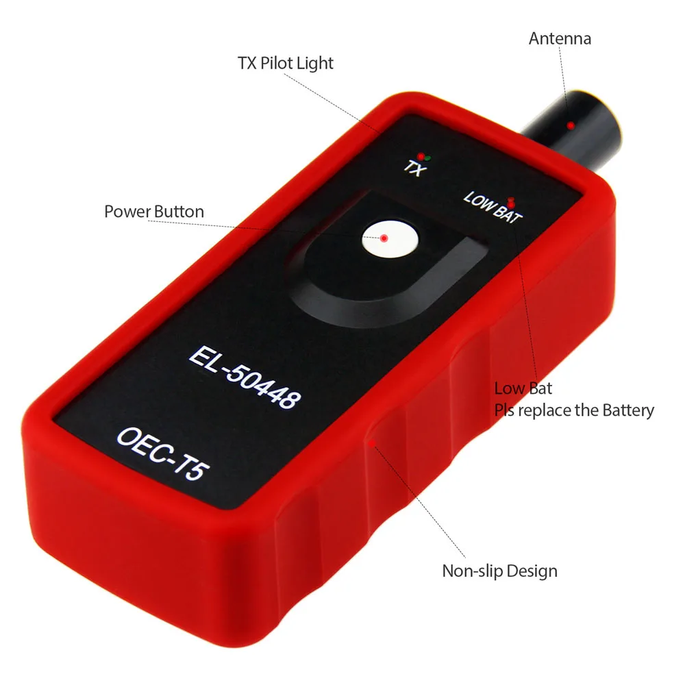 Внимание: мигание 2 светодиода означает, что аккумулятор слишком разряжен, нуждается в замене. Super EL50448-это новый продукт, который способен работать как с сериями G.M, так и с F. Инструмент для повторного обучения серии ord TPMS, Super EL50448-незаменимый инструмент для замены датчика давления в шинах, снятия или замены шин на G.M / C.hevy / Bu.ick / G.MC / F.ord / L. Инколн/м. ercury и т. Д.