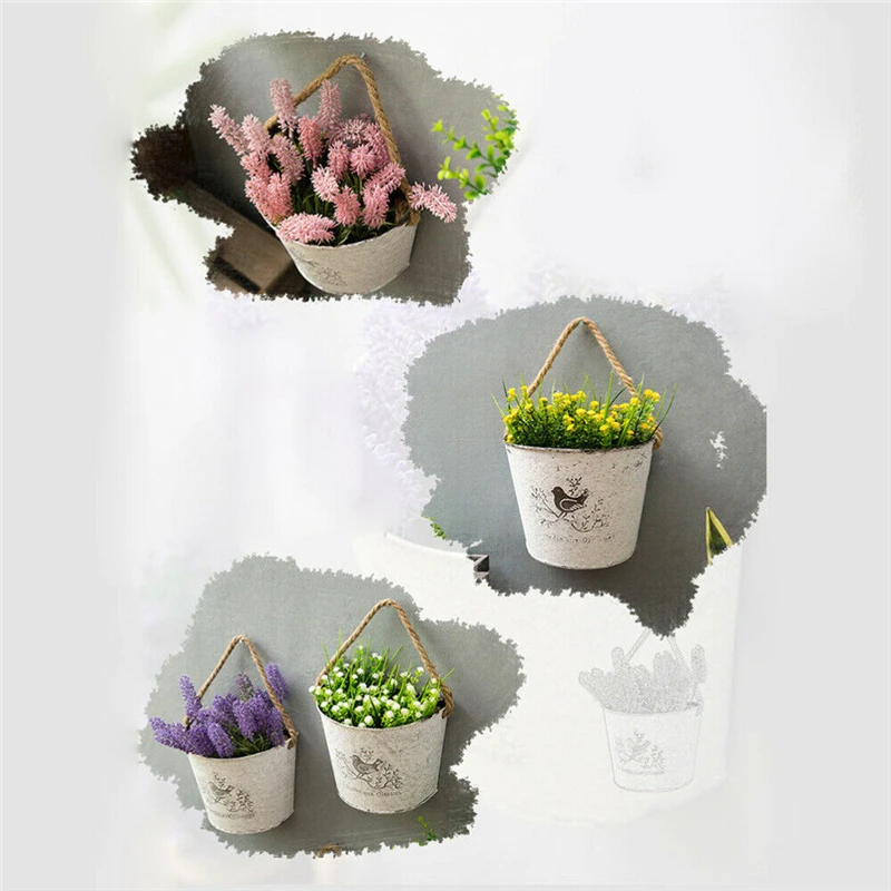Винтажный металлический цветок ваза пасторальный стиль деревенский Железный настенный цветочный горшок для балкона садовые растения с веревкой