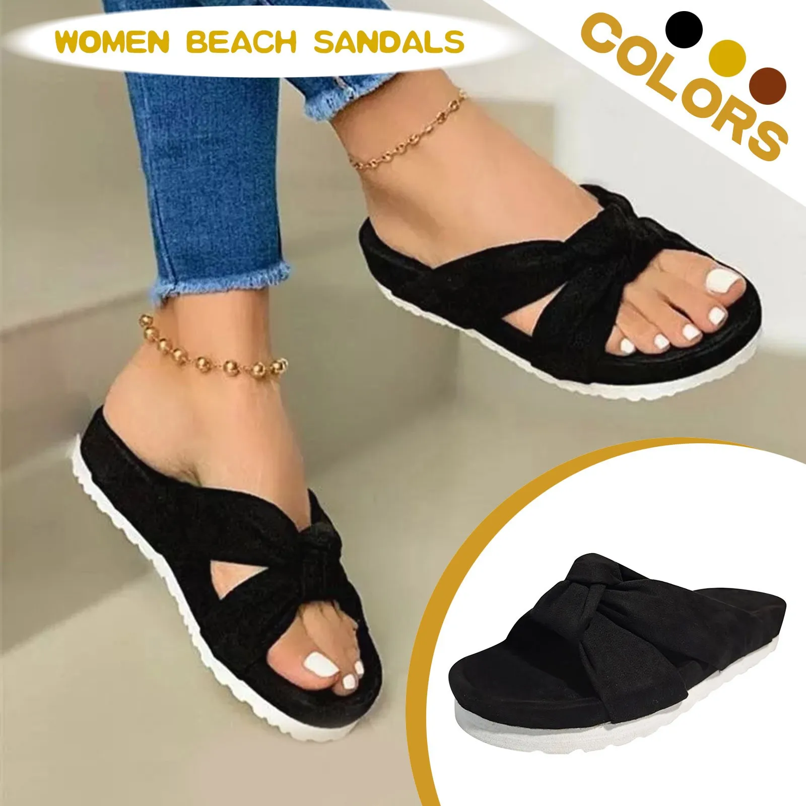Летние шлепанцы из флока на плоской подошве, пляжные дышащие, с открытым носком, летние уличные сандалии, шлепанцы, шлепанцы, обувь