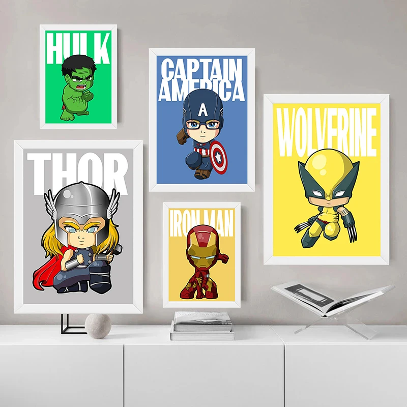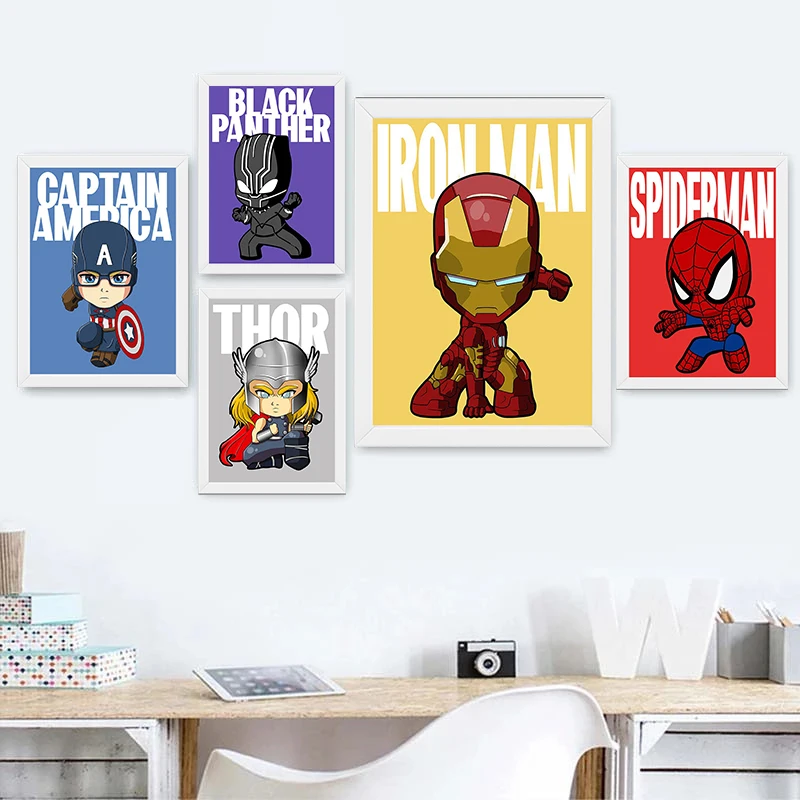 Постеры с героями мультфильмов Marvel Мстители, супергерой, Человек...