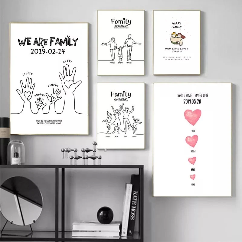 Персонализированные милые семейные постеры печать Юбилейная Дата заказное имя холст картина свадебный день подарок домашний Настенный декор